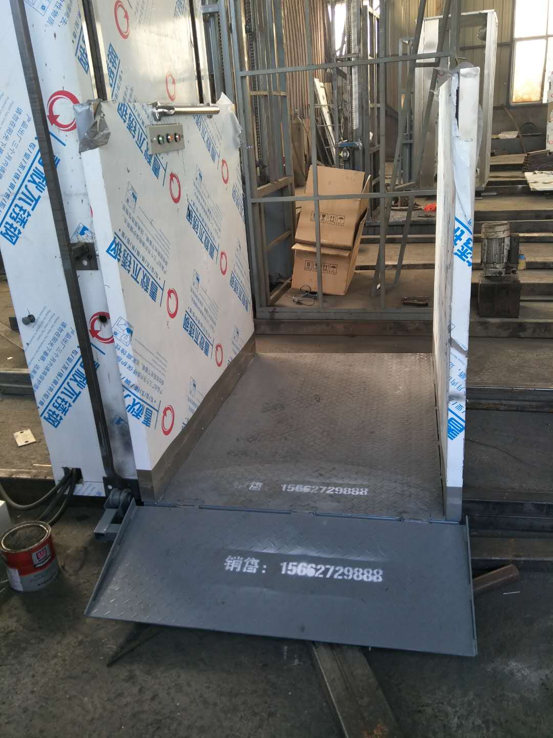 导轨式载货升降货梯由台面、导轨柱、电机、泵站几个部件组成。其结构简单,安装方便,对安装环...
